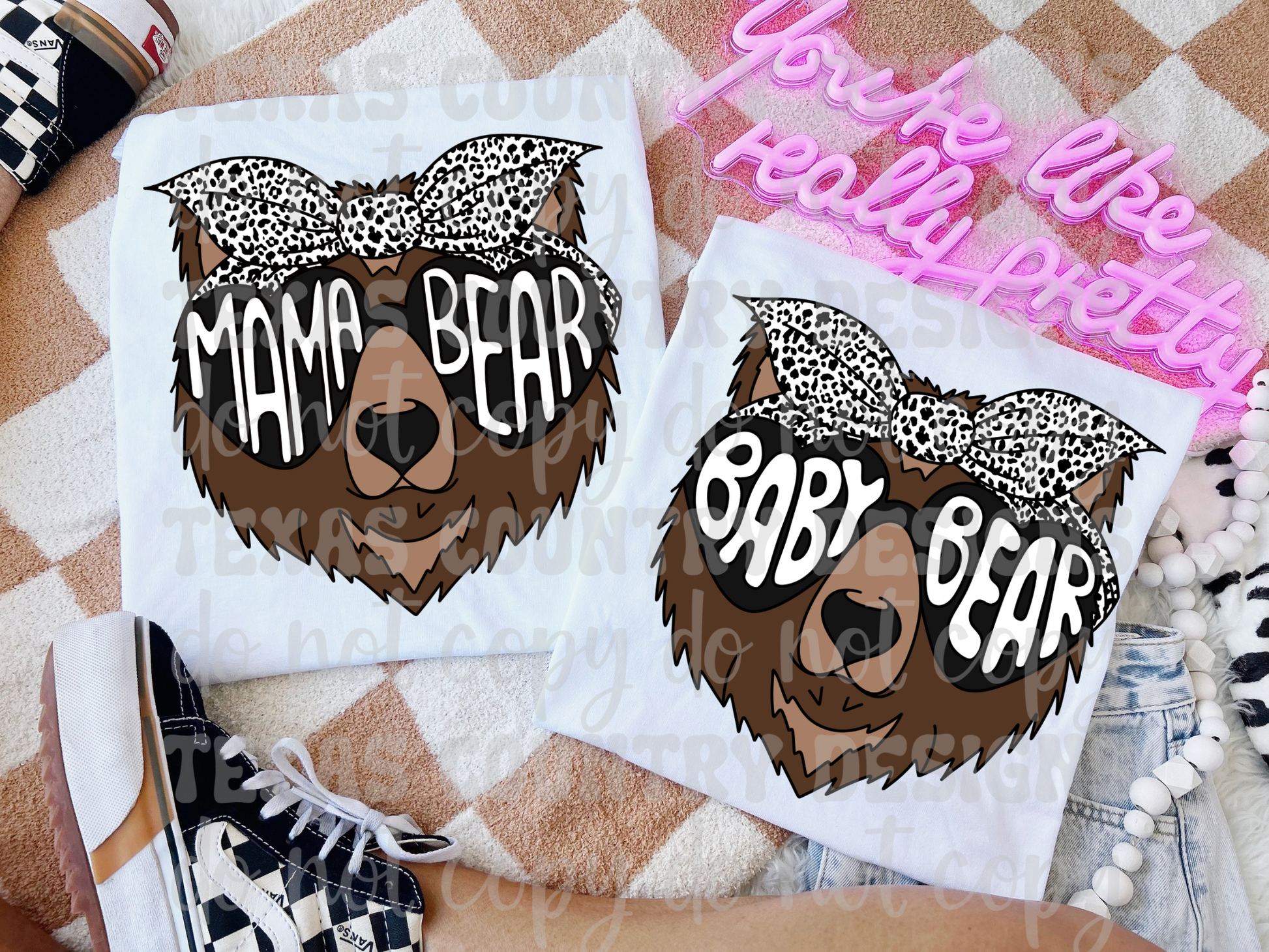 Mama/Baby Bear White Cheetah Print
